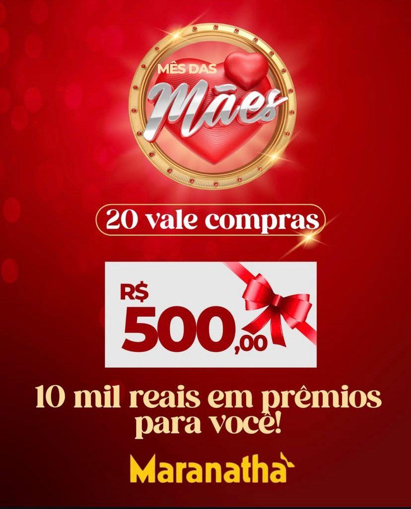 O mês de maio chegou e, com ele, a Maranathã preparou uma campanha especial para homenagear todas as mães com promoções imperdíveis, formas facilitadas de pagamento e prêmios que vão surpreender. Ao longo do mês, os clientes que comprarem na loja estarão concorrendo a 20 vales-compras de R$ 500,00, totalizando R$ 10 mil em prêmios.