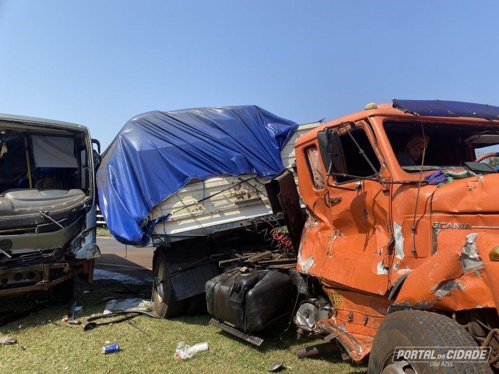 Conforme informações, a carreta estava parada na rodovia, e quando o motorista foi realizar a manobra de conversão no trevo, o micro-ônibus que seguia no sentido oposto bateu fortemente na lateral da cabine do veículo de carga. Duas pessoas foram ejetadas no momento do impacto.