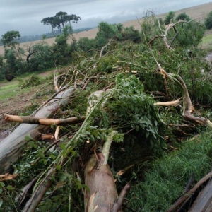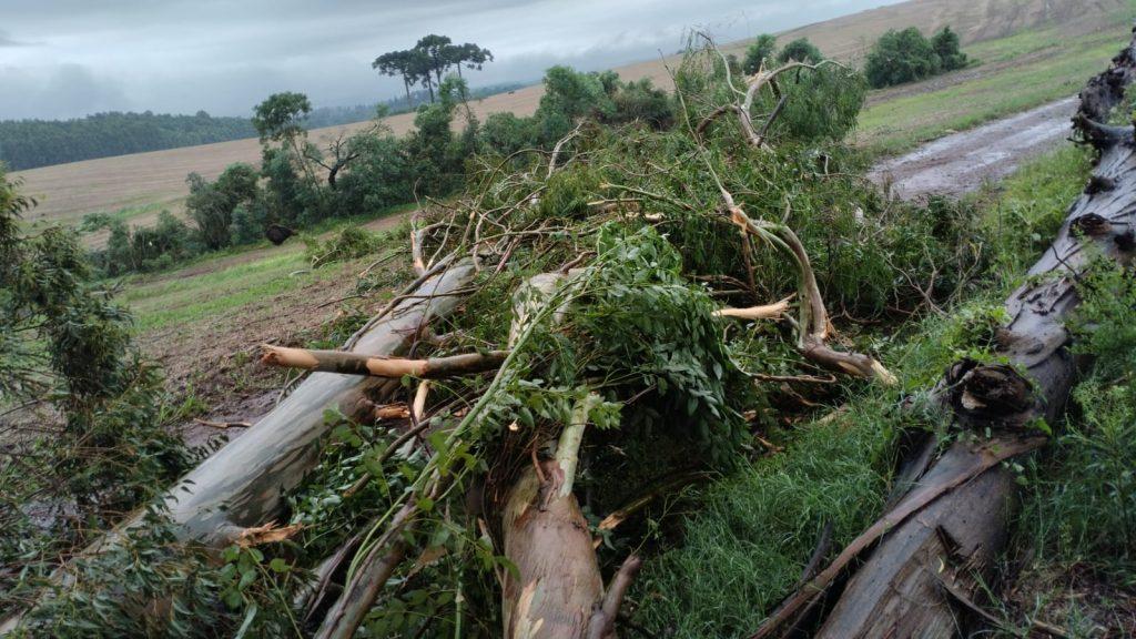 Conforme o Corpo de Bombeiros de Abelardo Luz, a guarnição foi chamada por volta das 24 horas para fazer o corte de árvores caídas sobre a via. Ainda segundo os bombeiros, diversas árvores de grande porte foram ao chão. O temporal também derrubou a estrutura de um aviário com cerca de 2.300 m² com lotação de aproximadamente 28.300 aves.