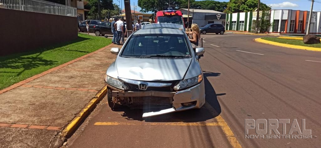 O acidente aconteceu quando o Honda Civic trafegava pela José João Muraro e a motociclista seguia pela rua Cascavel e quando os dois veículos entraram na rotatória aconteceu a batida.