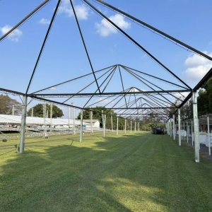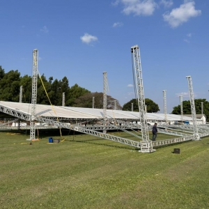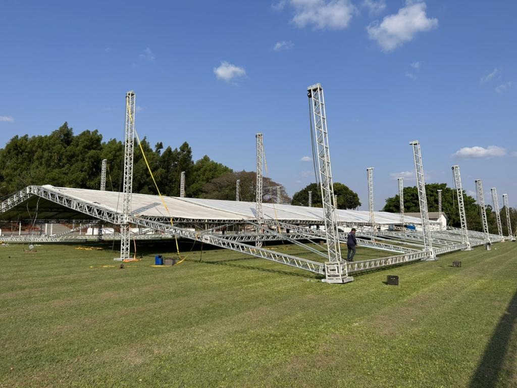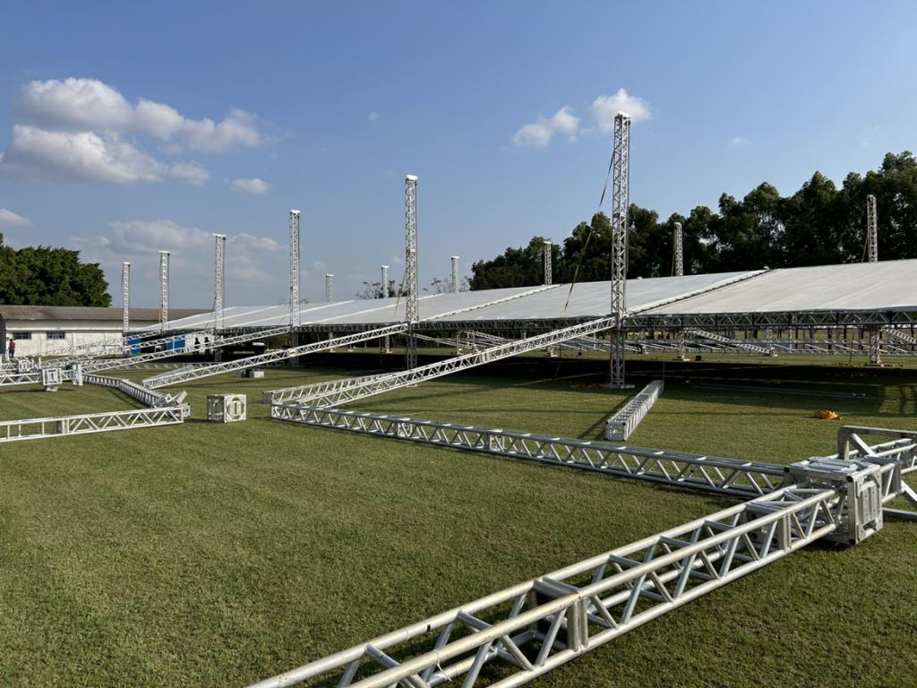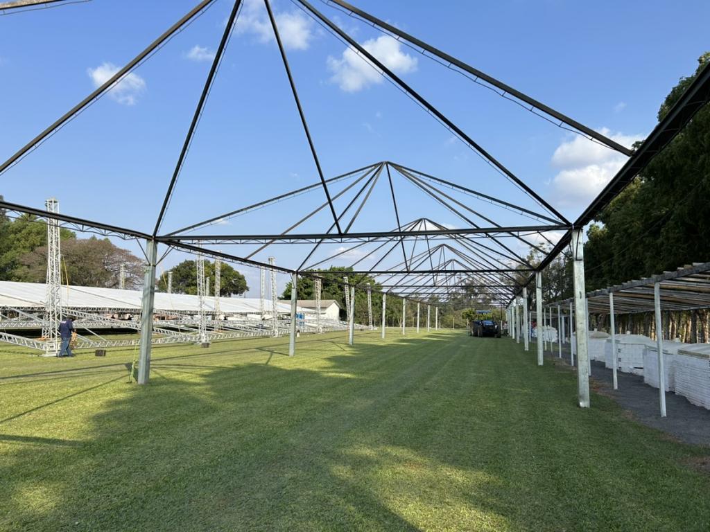 A menos de uma semana para o início da festa de 31 anos de Mercedes, dezenas de trabalhadores estão empenhados na montagem das estruturas no Clube Grêmio, palco dos festejos. A área coberta que está sendo montada é superior a 2,3 mil metros quadrados.