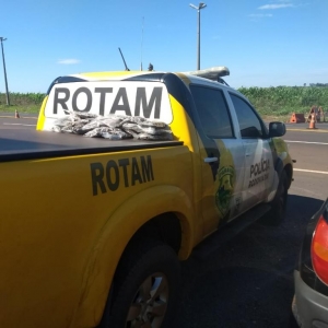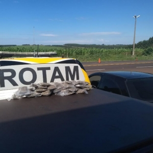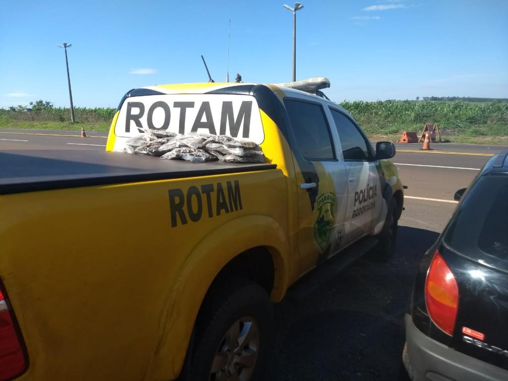 No final da manhã de hoje (27), por volta das 11h50 durante operação de fiscalização na PRC 272 km 506, foi abordado um veículo Celta de cor preta de placas de Iguatemi – MS, condutor 26 anos de idade, morador de Guaíra.