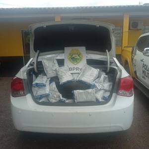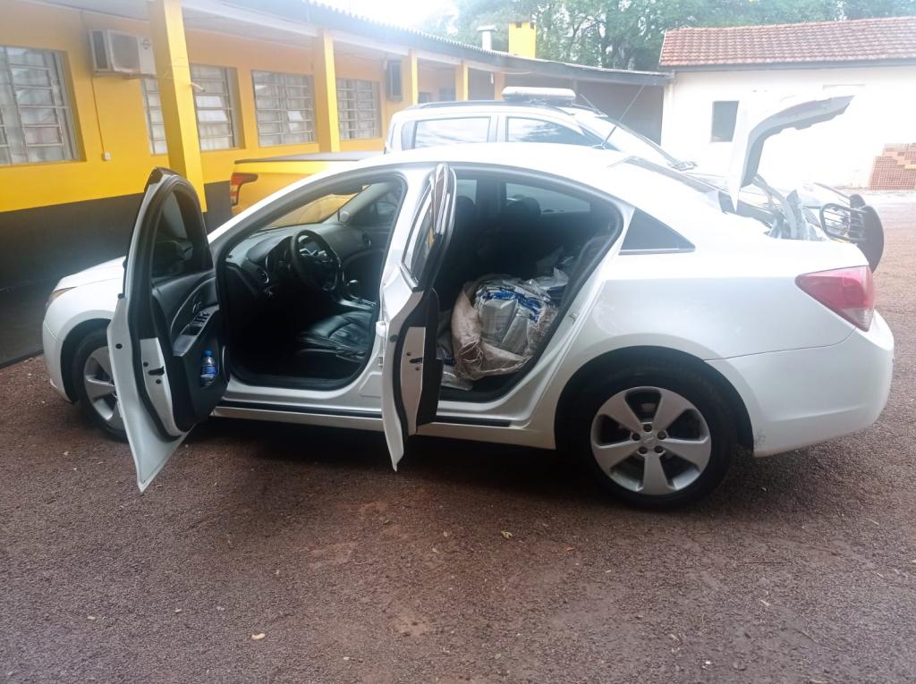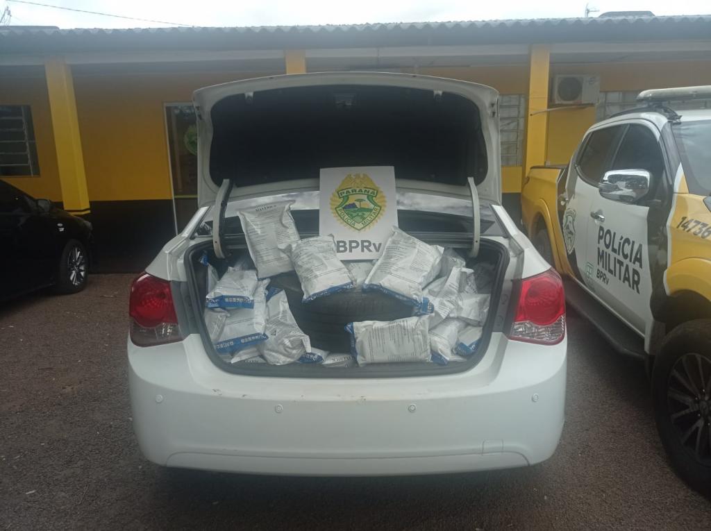 De imediato a equipe deslocou até o local onde o veículo estava retornando a rodovia sendo realizada a abordagem e após verificação da documentação pessoal do condutor foi constatado que o mesmo transportava no seu interior, em cima do banco traseiro e no porta malas a quantia de 300 pacotes de 1kg cada, do inseticida da marca MAVERICK oriundos do Paraguai.