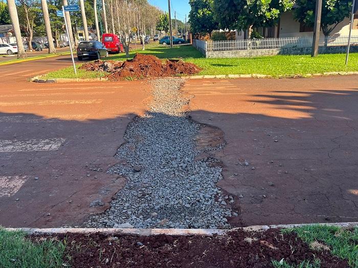 Moradores de Nova Santa Rosa entraram em contato com a reportagem do Portal na manhã desta segunda-feira para reclamar de um buraco deixado na esquina da rua Santo Americo com a avenida Tucunduva, o buraco foi aberto para obras da Sanepar que estão inacabadas e foi colocado pedras que se espalham no asfalto com a passagem dos veículos.