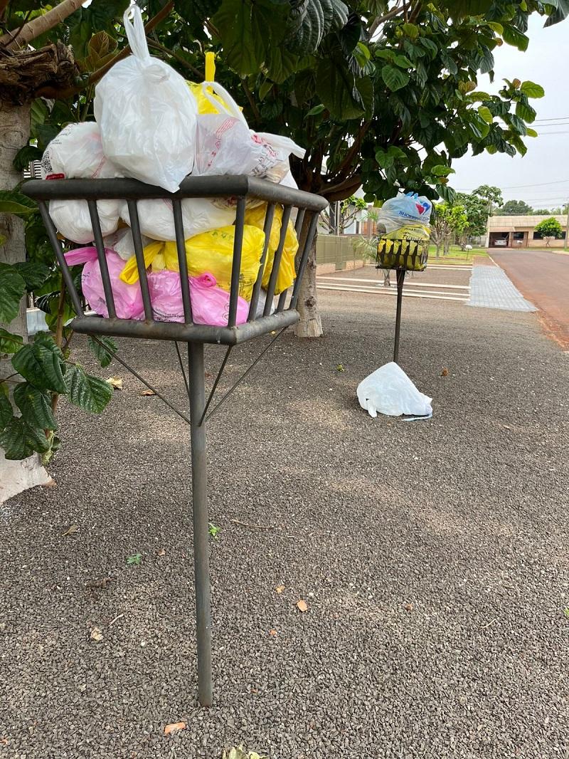 As imagens das lixeiras cheias foram feitas no final da manhã de hoje, quinta-feira (17).