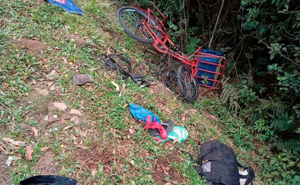 Não há informações sobre como o acidente aconteceu, mas a suspeita é de que o ciclista tenha sido atropelado por um carro ou caminhão. Com o impacto, ele foi arremessado para o matagal e morreu na hora.