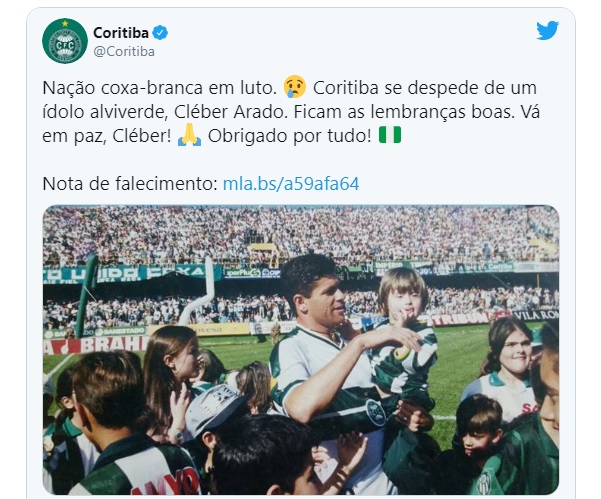 O Coritiba publicou uma nota de pesar pela morte do ex-jogador.