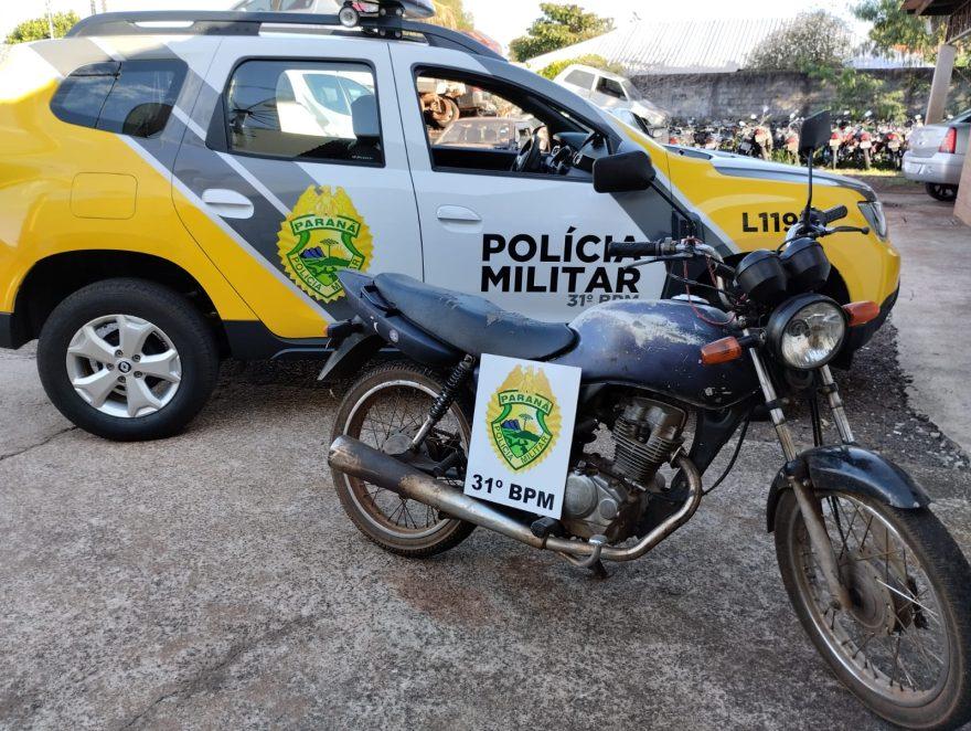 Uma motocicleta foi apreendida pela Polícia Militar na tarde desta segunda-feira (24) em Terra Roxa.