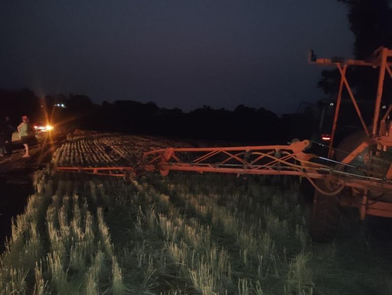 Ao adentrar com a o trator e pulverizador na lavoura, a motocicleta Honda CBR 1100XX, que seguia em direção à Três Irmãs, acabou colidindo com a barra do pulverizador, que ainda estava sobre a pista.