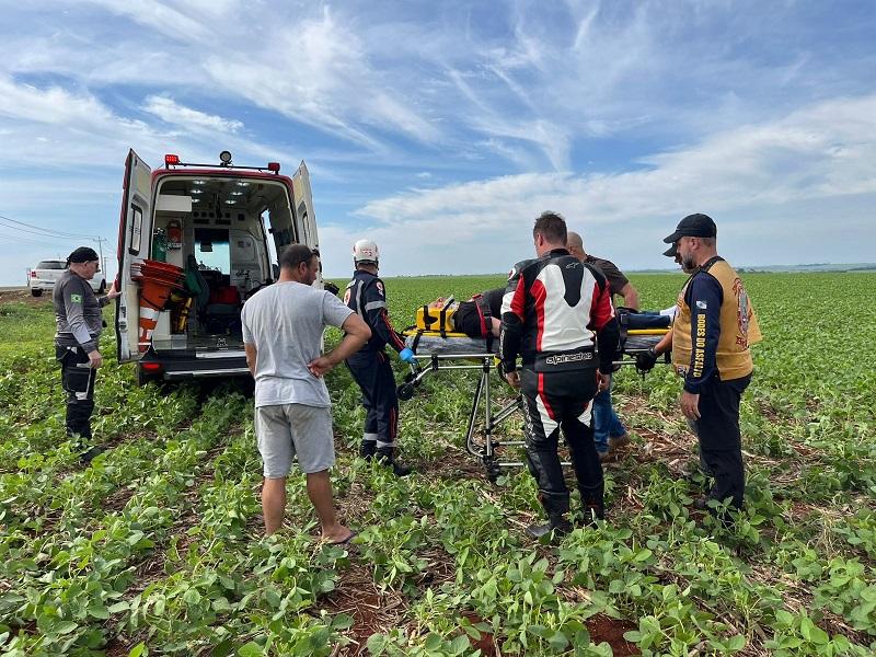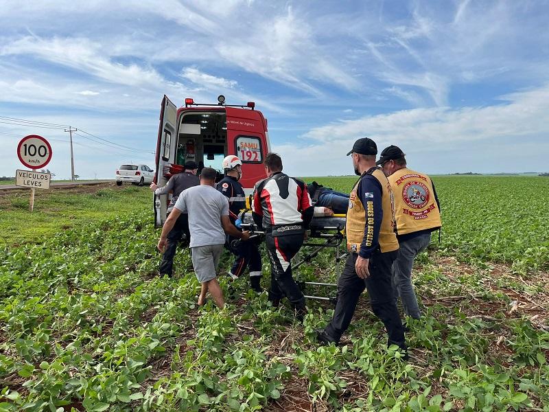 Populares que estavam no local, disseram que o motociclista, morador de Cascavel de aproximadamente 50 anos, seguia sentido Palotina a Toledo e na curva, possivelmente perdeu o controle da moto, saiu da pista e foi parar em uma lavoura de soja, as margens da rodovia, o motociclista foi parar a uns 20 metros de ontem a moto ficou.