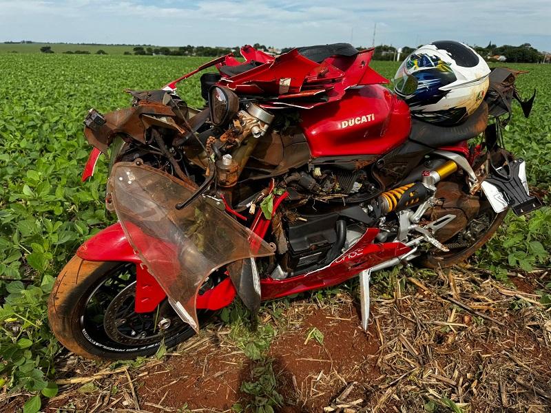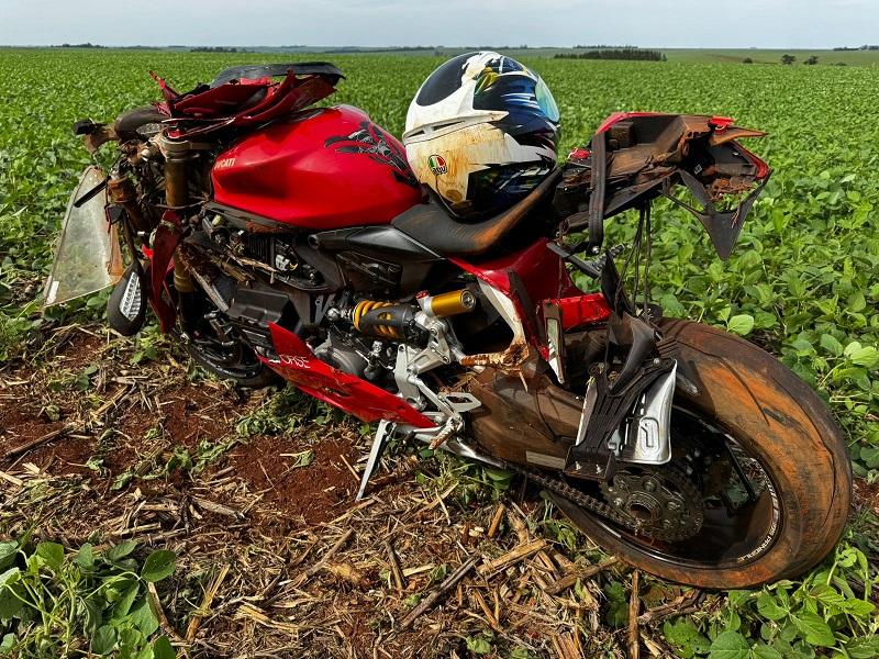 Um acidente com uma moto esportiva de alta cilindrada da marca Ducati aconteceu na tarde deste sábado (26), por volta das 14h45 na rodovia PR 182, proximidades da entrada de acesso ao distrito de Candeias em Maripá.