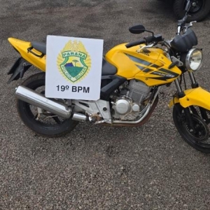 Durante a verificação, foi constatado que se tratava de uma Honda CBX 250 Twister, de cor amarela, com registro de furto na cidade de Cascavel, ocorrido no último sábado (11).