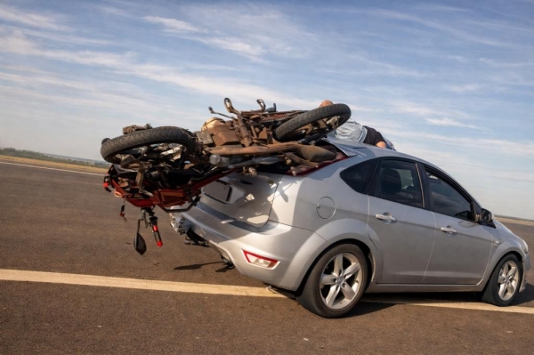 Com o tráfego operando em meia pista devido às intervenções, houve engarrafamento. O motorista do carro reduziu a velocidade, mas o motociclista que vinha logo atrás não conseguiu frear a tempo e colidiu na traseira. Com o impacto, a cena chamou atenção: a motocicleta ficou literalmente presa ao veículo, permanecendo "encaixada" na estrutura traseira.