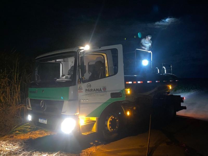 O caminhão pipa da Prefeitura de Mercedes foi acionado e combateu o fogo, impedindo que o incêndio se alastrasse para a vegetação.