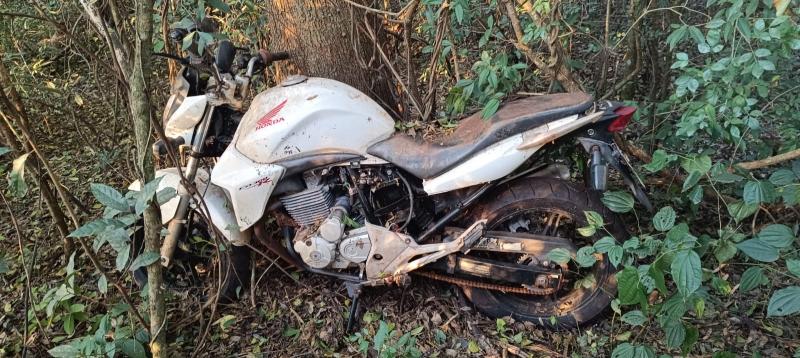 Com auxílio do proprietário, a motocicleta foi localizada em meio a uma mata e encaminhada para a 47ª Delegacia Regional de Polícia (DRP).