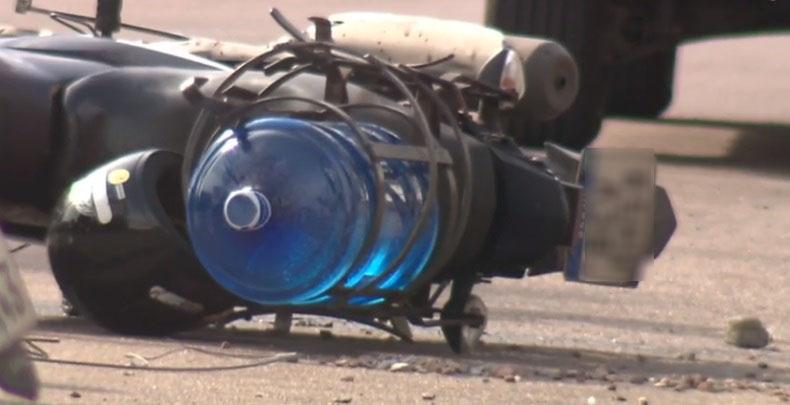 O motoboy passava pela rua para entregar água quando derrapou e caiu. Ele morreu na hora.