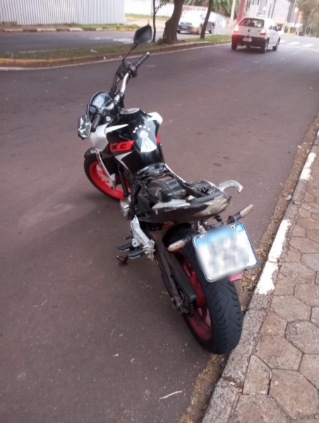 A ocorrência começou quando a equipe foi abordada por um ciclista em frente a um supermercado, na Vila Industrial. O homem informou que havia visto uma motocicleta branca abandonada, com os faróis ligados, na Rua Carlos Barbosa.