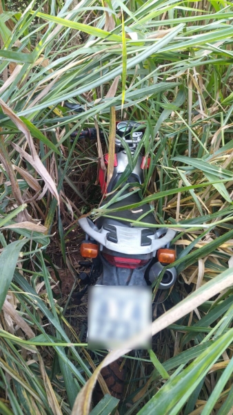 De acordo com a Polícia Militar, um trabalhador que estava em uma lavoura entrou em contato informando que havia encontrado uma motocicleta escondida em meio à vegetação. O veículo estava coberto com galhos e folhas em uma área de mata nas proximidades da entrada da Linha São Francisco.