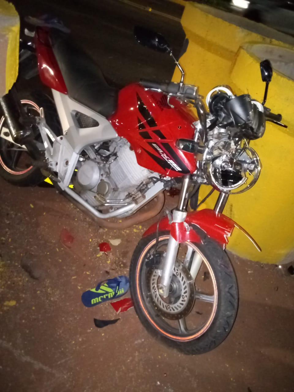 A colisão aconteceu contra tubos de concreto. O motociclista de 45 anos, seguia pela avenida e provavelmente não percebeu o anteparo e colidiu.