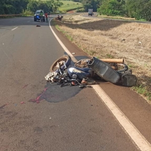 Um acidente do tipo colisão traseira entre uma motocicleta e um caminhão foi registrado por volta das 8h50 desta sexta-feira (09) na rodovia BR-163, entre Toledo e Cascavel, no trecho entre a entrada para o distrito de Bom Princípio e a ponte sobre o Rio Lopeí, em Toledo.