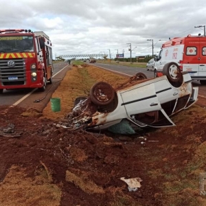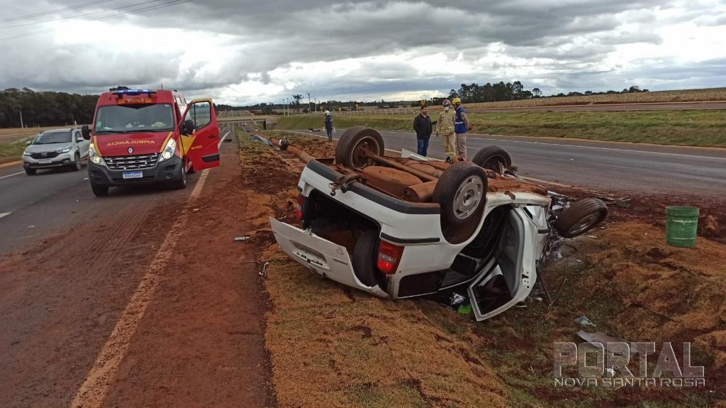 A Polícia Rodoviária Federal atendeu a ocorrência, o veículo Parati, ao capotar teve princípio de incêndio na parte do motor, mas foi logo controlado pelos bombeiros.