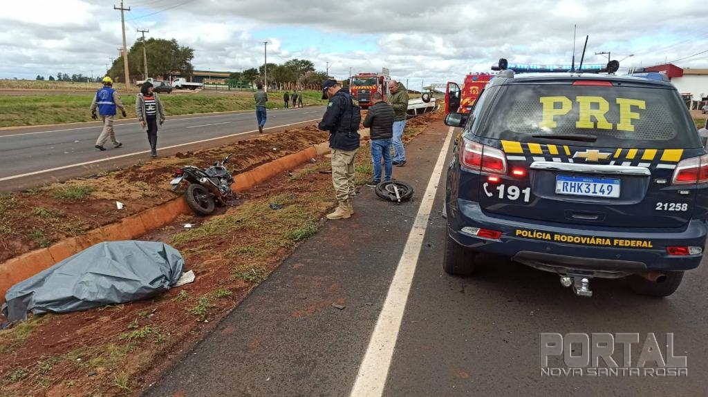Um acidente entre um carro e uma moto com uma vítima fatal foi registrado na tarde desta quarta-feira na rodovia BR-163 próximo ao centro de eventos Ismael Sperafico em Toledo e envolveu um veículo Volkswagen Parati com placas de Toledo conduzido por Júnior Francisco Tártaro de 22 anos e uma moto Honda CB 300 cilindradas com placa Mercosul conduzida por Neri Weiber Fiuza de 60 anos.