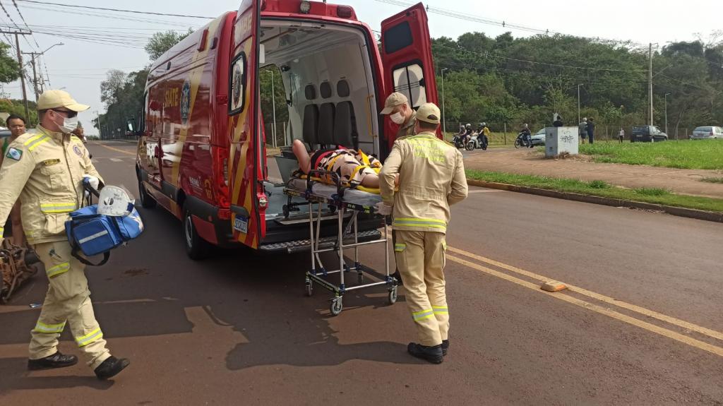 A vítima foi socorrida por uma equipe do Corpo de Bombeiros, com ferimentos considerados moderados. Ela foi encaminhada à UPA para atendimento hospitalar.
