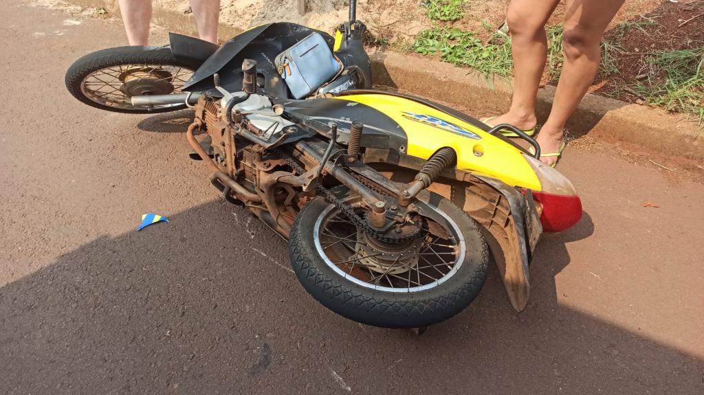 Um acidente entre um carro e uma moto foi registrado, na tarde desta terça-feira (24), na Rua Osvaldo Aranha, no Jardim Panorama, em Toledo.