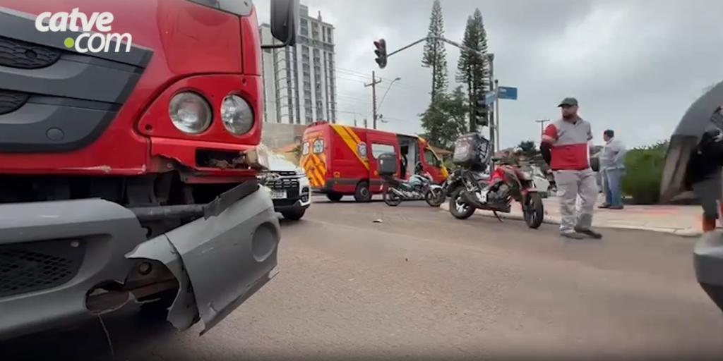Um motociclista, de 29 anos, ficou ferido na manhã desta quarta-feira (4) após se envolver em um acidente com um caminhão no bairro Neva, em Cascavel, no Oeste do Paraná.