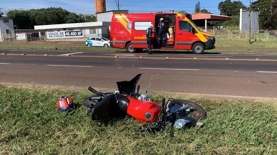 De acordo com o inspetor Antônio Gradin da Polícia Rodoviária Federal (PRF), populares relataram que um veículo bateu contra a traseira da motocicleta sentido Foz do Iguaçu (PR).
