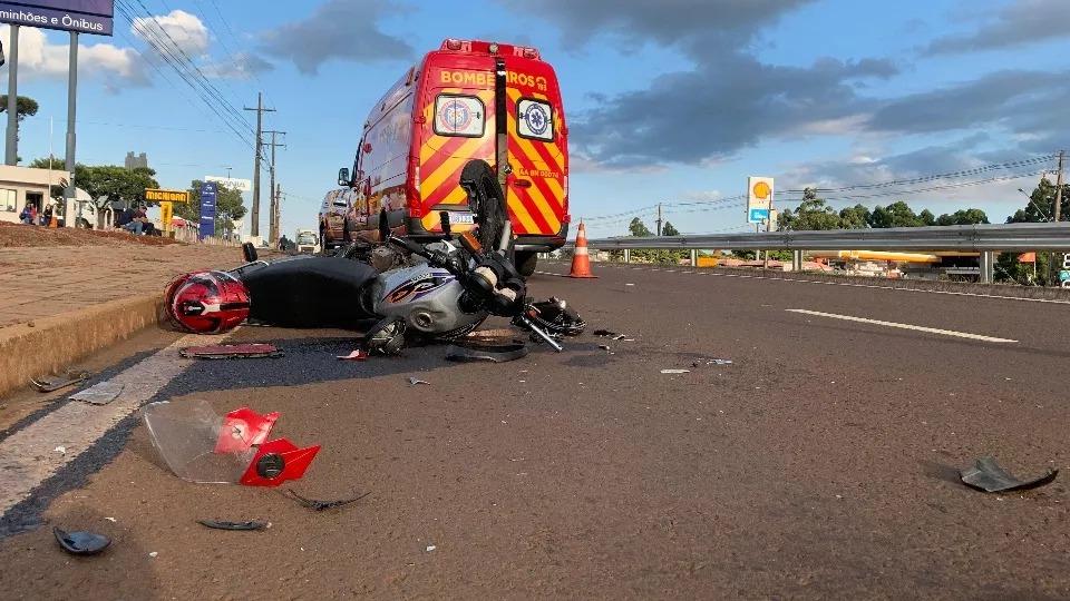 Um jovem de 24 anos ficou gravemente ferido em acidente de trânsito na marginal da BR-277, em Cascavel, no Oeste do Paraná, na manhã desta segunda-feira (13). A situação aconteceu na região do bairro Presidente, depois do Trevo Cataratas.