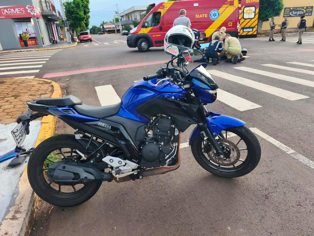 Um acidente de trânsito mobilizou equipes de emergência no fim da tarde de sexta-feira (16), no cruzamento da Rua Santa Catarina com a Rua 12 de Outubro, na região central de Marechal Cândido Rondon.