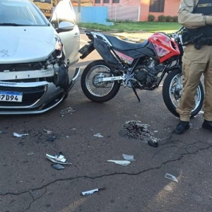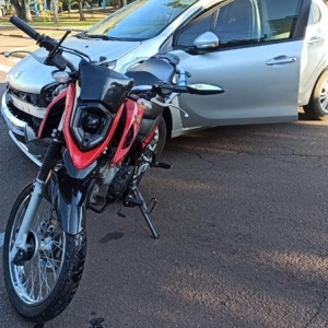 Um acidente de trânsito entre um automóvel e uma motocicleta foi registrado nesta segunda-feira (12), no cruzamento da Rua 15 de Novembro com a Rua Independência, no bairro Jardim La Salle, em Toledo.
