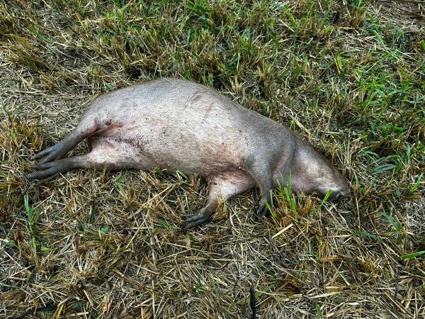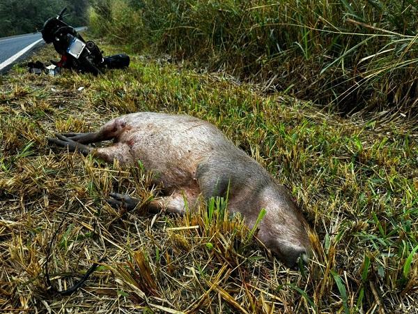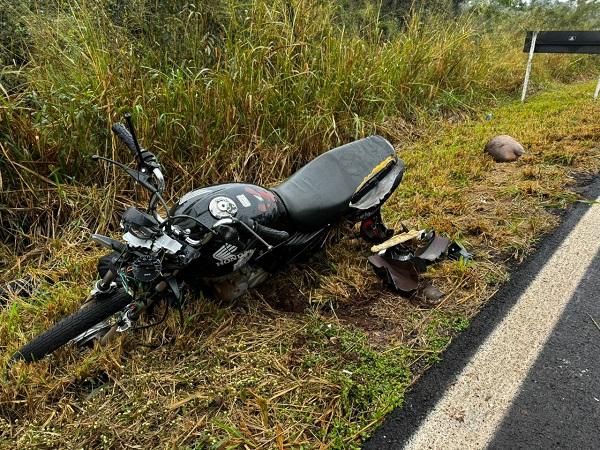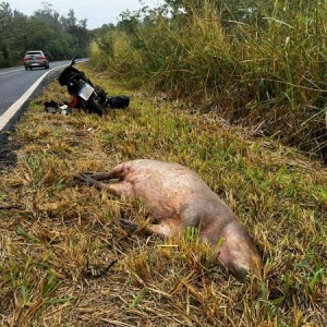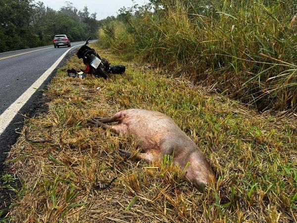 A capivara acabou morreu em decorrência do impacto, que também deixou a moto bastante danificada.