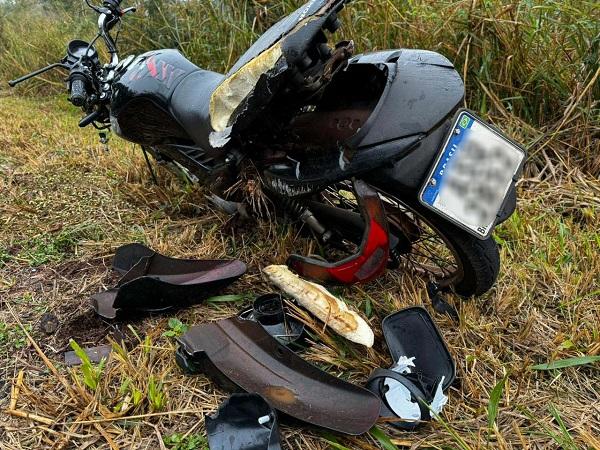 O motociclista, de nome Jonathan e morador de Marechal Rondon, resultou com fratura em uma das pernas e deslocamento no ombro.