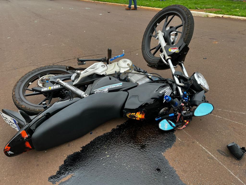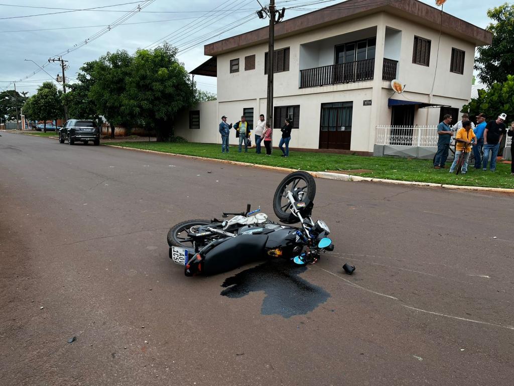 Conforme informações repassadas a nossa reportagem, um veículo Jeep Commander, conduzido por um morador do município, trafegava pela rua Boa Vista sentido lago municipal, quando teve a lateral atingida por um jovem motociclista que seguia com uma Honda pela rua Três de Maio.
