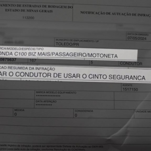 Em Toledo, a família Simonatto não teve a opção de escolher, apenas receberam correspondência surpresa do DER MG (Departamento de Estradas de Rodagem do Estado de Minas Gerais) com uma multa de R$ 195,23, por o motociclista não usar o cinto de segurança.