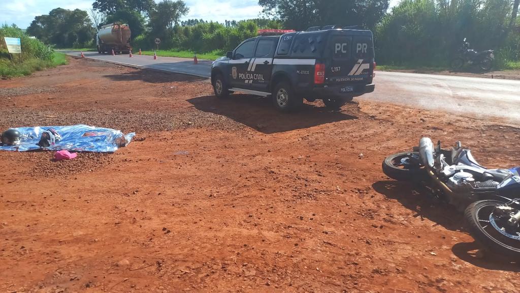 Um grave acidente de trânsito foi registrado na manhã desta sexta-feira (04) na rodovia PR-182, entre Palotina e Francisco Alves, próximo a empresa Três Bom, no entroncamento com uma estrada vicinal, e resultou na morte de um motociclista. A vítima foi identificada como Vinícius Depolo.