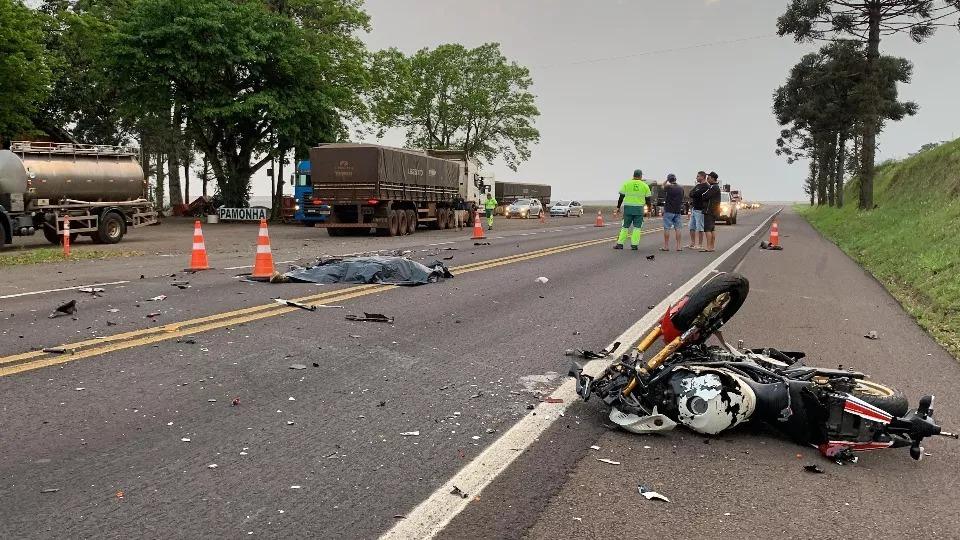 Um homem morreu em uma grave colisão de trânsito envolvendo uma motocicleta e um caminhão, no fim da madrugada desta quinta-feira (19), na rodovia BR-277, próximo a Céu azul. O piloto da motocicleta Yamaha R3 600, identificado com Marcos Dobrovolski, de 49 anos, não resistiu aos ferimentos e morreu antes da chegada do Corpo de Bombeiros.
