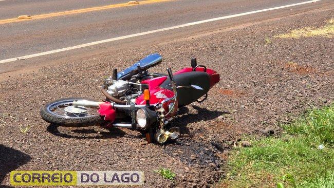 Um grave acidente foi registrado na tarde deste sábado (06), na PR-317, no distrito de Sub-Sede, em Santa Helena. Um motociclista seguia pela rodovia conduzindo uma Honda CG 125 quando, ao chegar na curva próxima ao Cemitério Municipal, acabou perdendo o controle do veículo.
