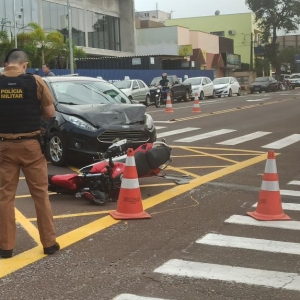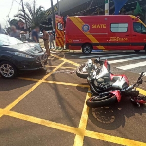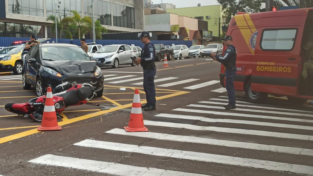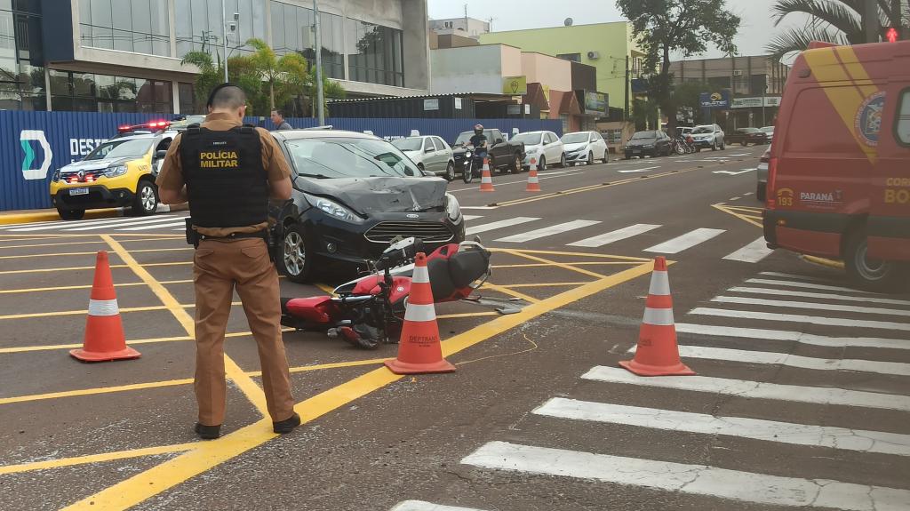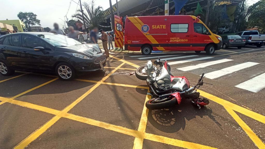 Um acidente de natureza grave, entre carro e moto, foi registrado por volta das 10h50 desta quarta-feira (07), em Toledo.