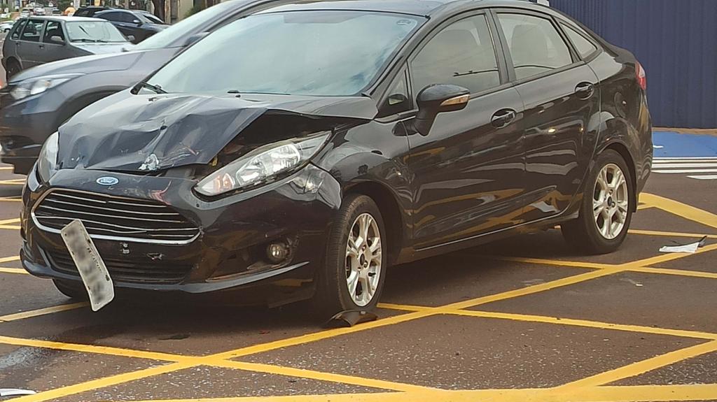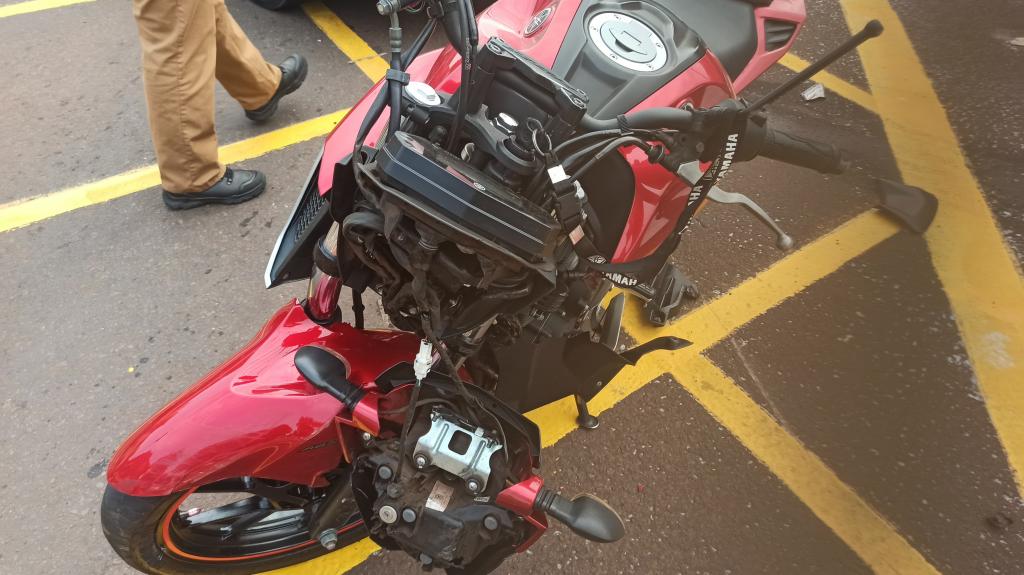 Foi no centro da cidade, no cruzamento da Rua São João com a Rua 12 de outubro, que um Ford Fiesta e uma Yamaha Fazer colidiram, no momento em que a condutora do carro foi realizar uma conversão à esquerda. A batida foi frontal.