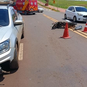 Uma colisão entre uma motocicleta e uma picape deixou um homem ferido na tarde desta terça-feira (4), em Toledo. O acidente ocorreu na Rua Pedro Álvares Cabral, região do Jardim Europa, nas proximidades da ponte sobre o Rio Toledo.
