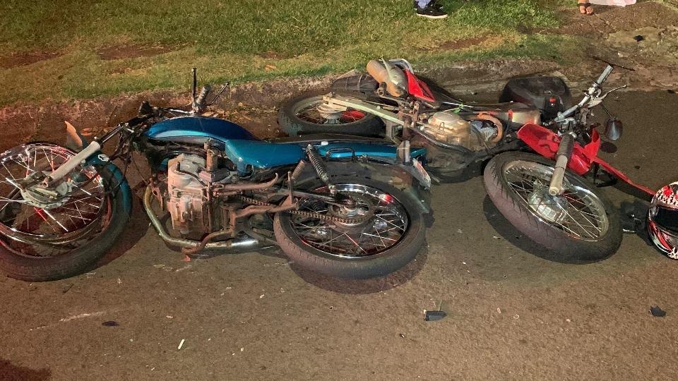 Dois motociclistas ficam feridos em um acidente no bairro Periolo, em Cascavel, na noite de ontem (5). O caso aconteceu na rua Leblon, quando as motos bateram de frente.