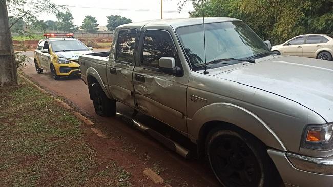O motorista da caminhonete fez uma conversão proibida a esquerda para acessar a Rua Celeste Muraro quando foi atingido na lateral direita pelo motociclista.