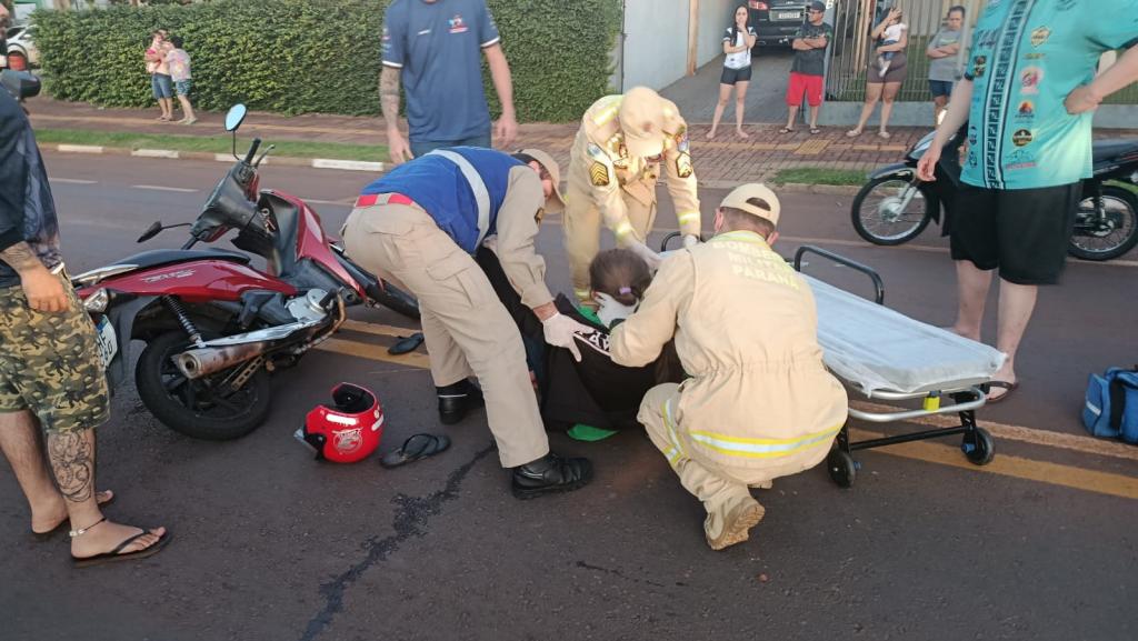 No início da noite desta terça-feira (14), uma motociclista de 20 anos ficou ferida após um acidente envolvendo uma moto e um automóvel na Rua Pedro Álvares Cabral, no Jardim Europa, em Toledo.