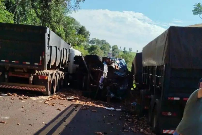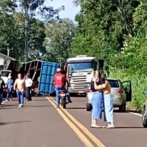 Apesar da gravidade da cena, o motorista que estava sobre a cabine sofreu apenas ferimentos leves. Os condutores das outras duas carretas saíram ilesos do acidente na PR-490. A rodovia foi bloqueada nos dois sentidos e permanece interditada para os trabalhos de retirada dos veículos e limpeza da pista. Motoristas devem buscar rotas alternativas até a liberação completa da via.