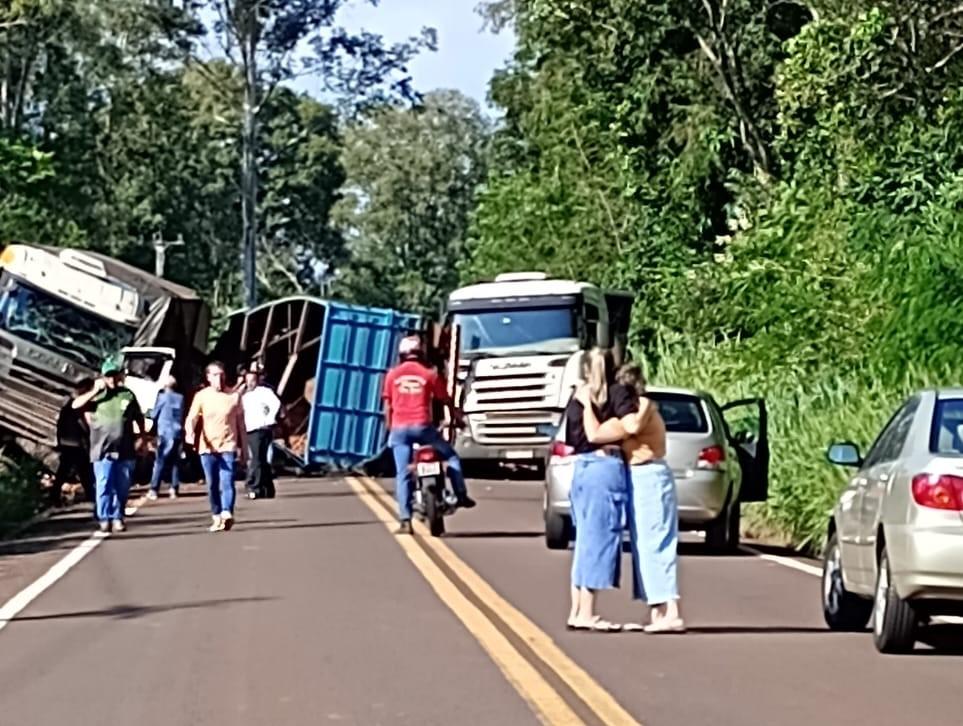 Um acidente na PR-490 envolvendo três caminhões foi registrado na manhã desta terça-feira (22), entre Altônia e São Jorge do Patrocínio, no noroeste do Paraná. Segundo relato de testemunhas, um carro de passeio tentou uma ultrapassagem em faixa contínua, colocando em risco os veículos que vinham em sentido contrário.