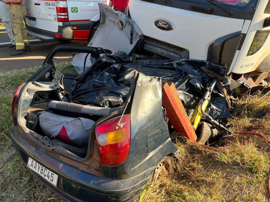 Segundo Krueger, o caminhão que seguia sentido Marechal Cândido Rondon invadiu a pista contrária e atingiu o carro que estava no acostamento, sentido Guaíra, aguardando para fazer uma conversão para uma estrada rural.