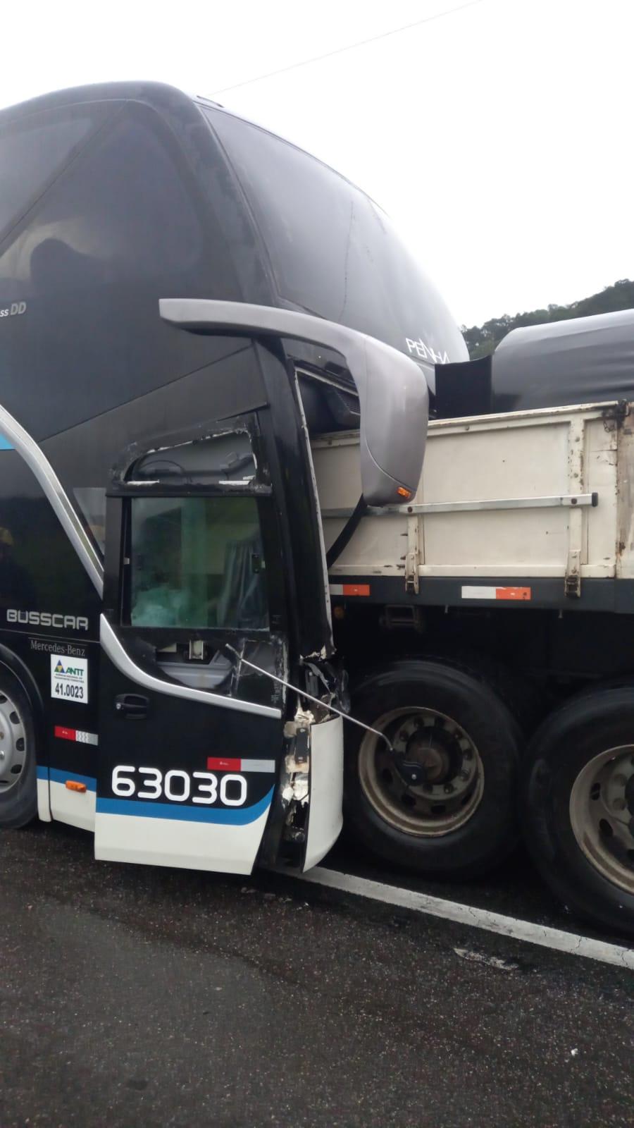 O acidente foi registrado no km 19 da rodovia no sentido Norte às 5h12, informou a concessionária da via. O ônibus bateu na traseira de um caminhão.